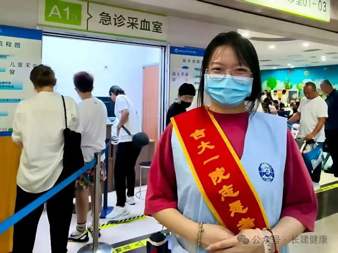 健康产业学院健康服务与管理2301班马雯爽在吉林大学第一医院小儿内分泌科与急诊采血处做志愿者。本次志愿者活动内容为引导家长填病历、协助测量身高体重、维持诊室秩序。