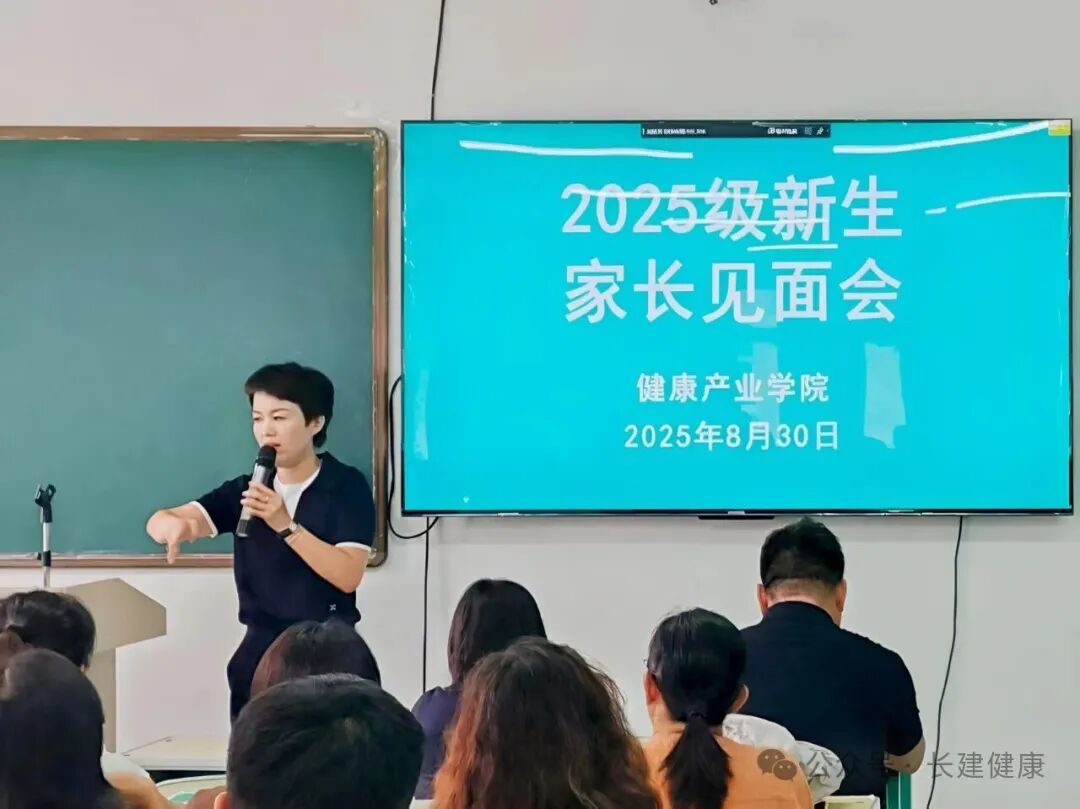 孙书记代表全体师生向2025级新生及家长表示热烈欢迎,并感谢家长们对健康产业学院的信任。孙书记详细介绍了学院的基本情况、办学理念、高端人才培养、专业建设及学生工作生活等情况,提到学院多年来始终坚持服务国家健康战略和行业需求,持续推进专业建设和人才培养,全力促进学院发展,同时他还表示:作为新时代的大学生,要树立远大的人生志向,扎实专业知识、提升专业素养,始终以学习为根本,实现全面发展,希望家长能与学校紧密配合,做好家校协同,共同培养孩子独立学习和生活的能力,一起期待他们成长成才。