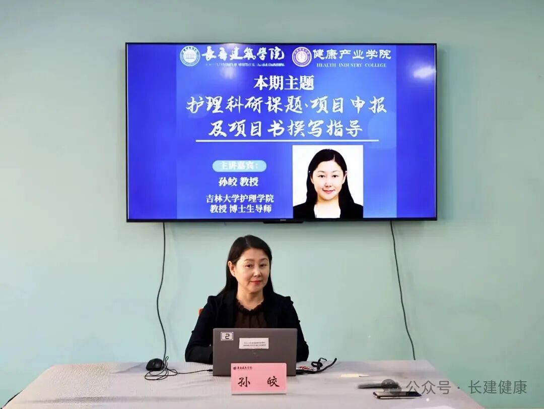 为进一步提升学院专业教师的科研能力,破解科研课题申报与项目书撰写过程中的难点问题,结合健康产业学院教师科研能力提升计划系列活动安排,10月14日下午,健康产业学院于D栋会议室开展教师科研能力提升计划系列活动之“科研课题、项目申报及项目书撰写指导”专题学术讲座,本次讲座特邀吉林大学护理学院孙皎教授主讲,全体教研室老师参加,由健康产业学院科研副院长王利群主持。