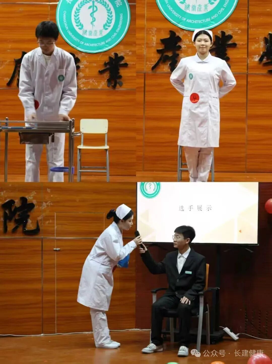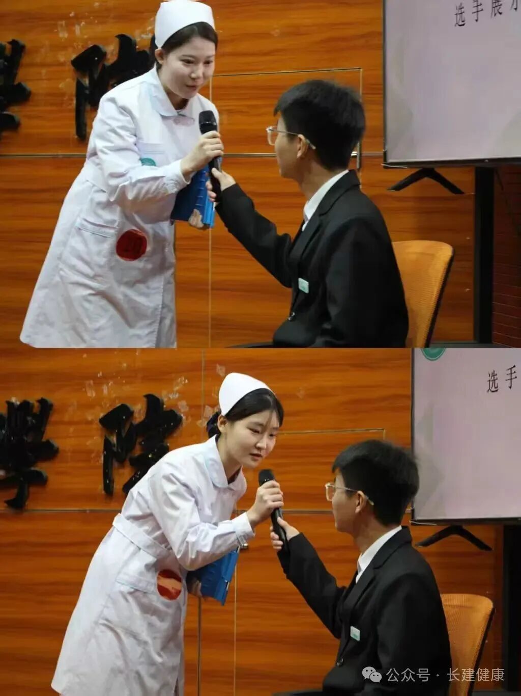 初赛现场氛围庄重而热烈,评委老师围绕仪容仪表、基础仪态、操作礼仪、沟通礼仪四大核心维度,细致考评每一位选手的表现。参赛选手身着整洁挺括的白大褂,头戴规范整齐的燕尾帽,妆容淡雅得体,身姿挺拔端庄,尽显护理专业的严谨与优雅。从站姿、坐姿,走姿的标准展现,到眼神、微笑、手势的细节传递,每一个动作都凝聚着日常训练的汗水,每一处神态都彰显着对护理事业的热爱。