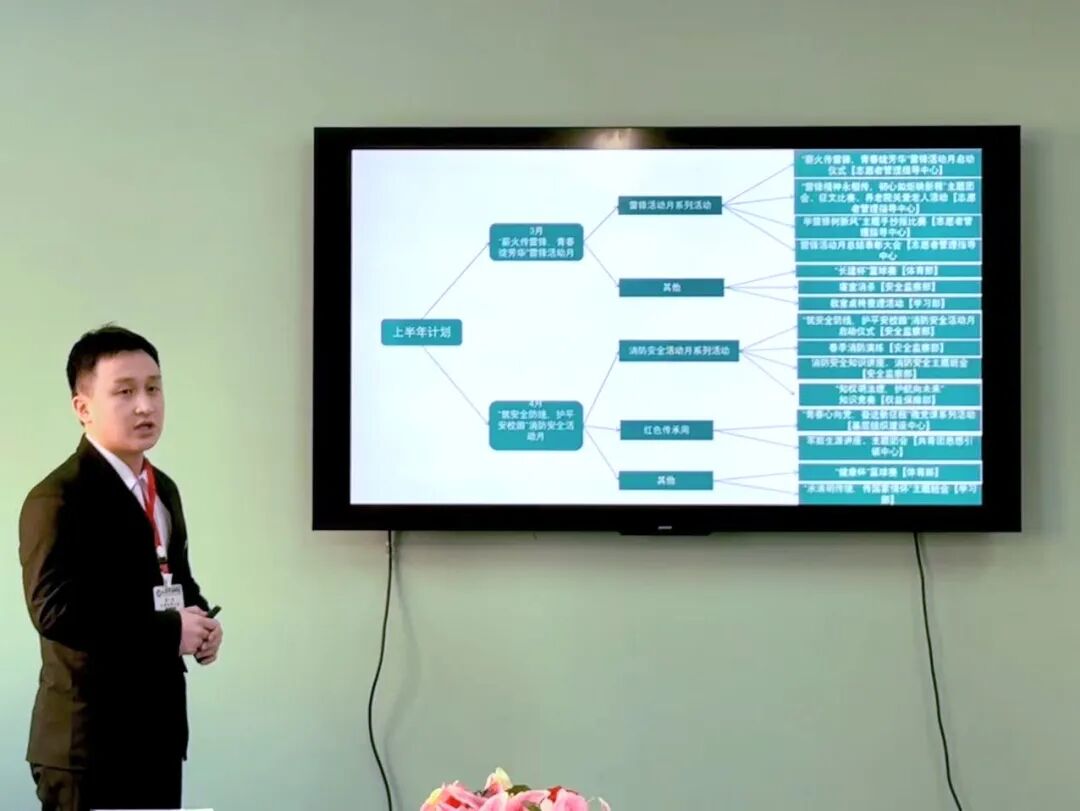 轮值主席祝世龙在会上汇报了2026年全年工作计划。他立足学院发展大局与学生工作核心,结合学院专业特色与学生实际需求,全面梳理并明确了年度整体工作目标及核心任务,向书记和各部门负责人汇报了全年工作的整体安排。他鼓励全体学生干部坚守初心、主动担当、务实作为,以认真负责的态度高质量完成各项工作任务,共同推动分团委学生会工作提质增效,助力学院学生工作迈上新台阶。