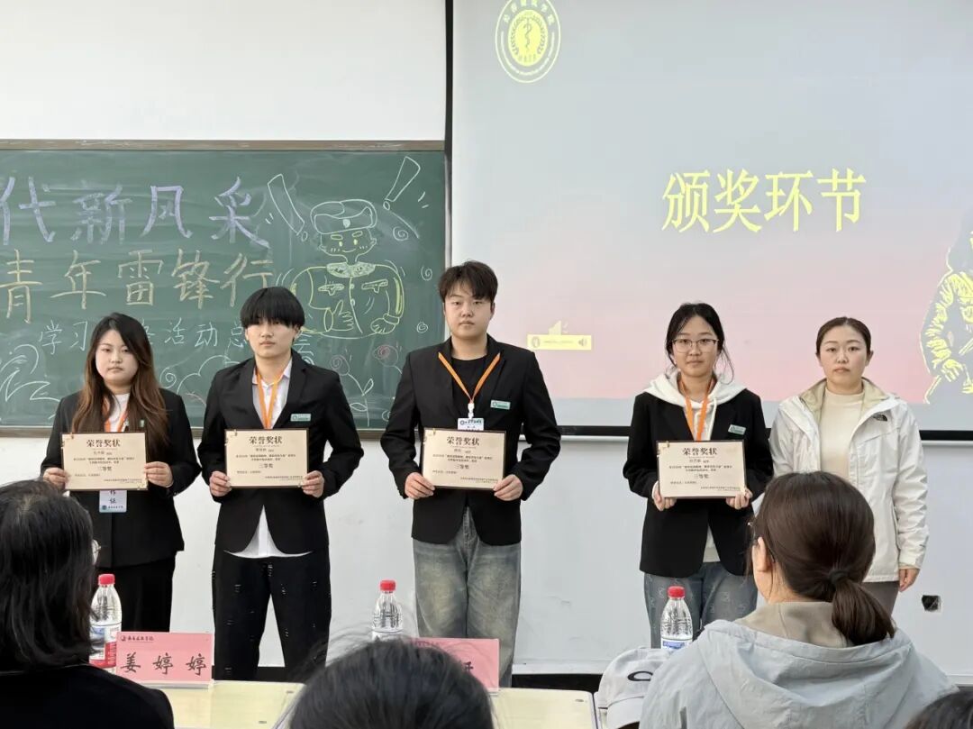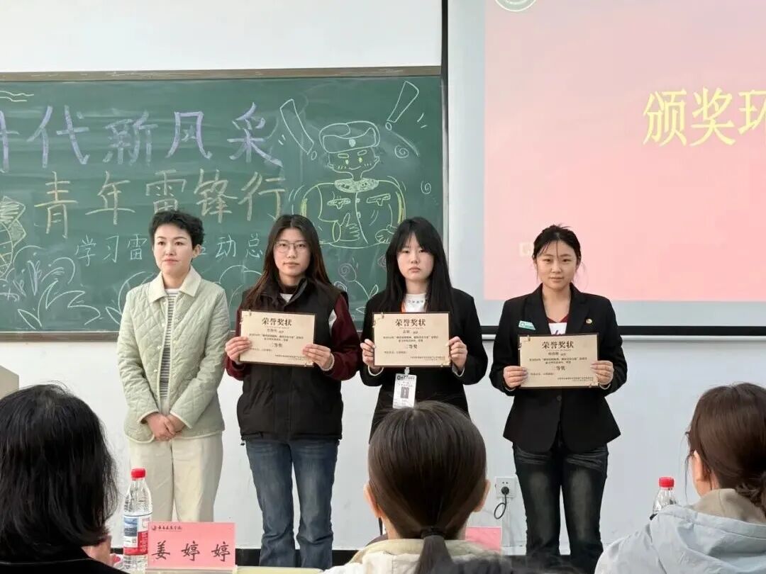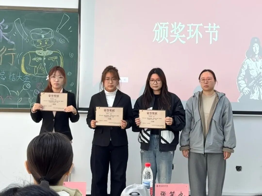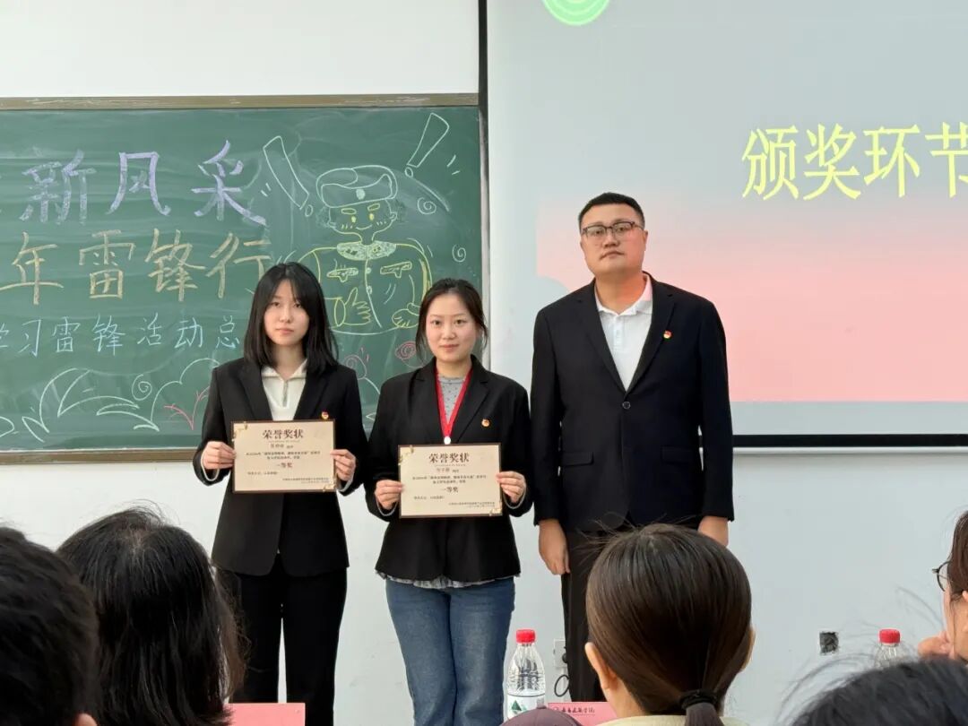 分团委书记葛万权、25级辅导员孙亚男、24级辅导员姜婷婷分别为获得征文一等奖、二等奖、三等奖的同学颁奖。