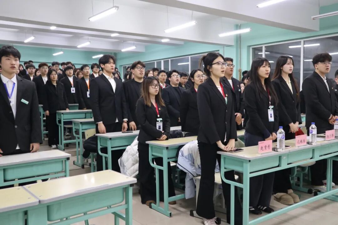 全体学生干部起立齐唱国歌,以饱满的热情表达对祖国的崇高敬意。