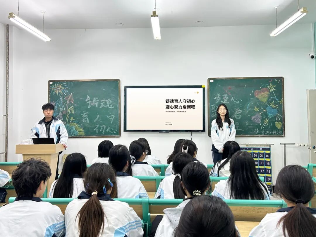 各班团支书紧扣“凝心铸魂”核心主题,结合青年学生思想成长与时代发展,通过理论阐释,青年榜样故事分享的形式,系统阐释党的创新理论核心要义,将抽象理论转化为贴近学生生活的生动内容,引导同学们深刻认识“听党话、跟党走”的重要意义,深化对自身责任与奋斗目标的理解,进一步凝聚起奋进新征程的思想共识。班会结束后,大家纷纷表示:“将以此次班会为契机,持续加强理论学习,坚定理想信念,把个人理想融入国家发展大局,以更加昂扬的姿态投身学习与实践,自觉肩负起新时代赋予青年的历史使命,将青春热忱转化为奋进新征程、建功新时代的实际行动。”