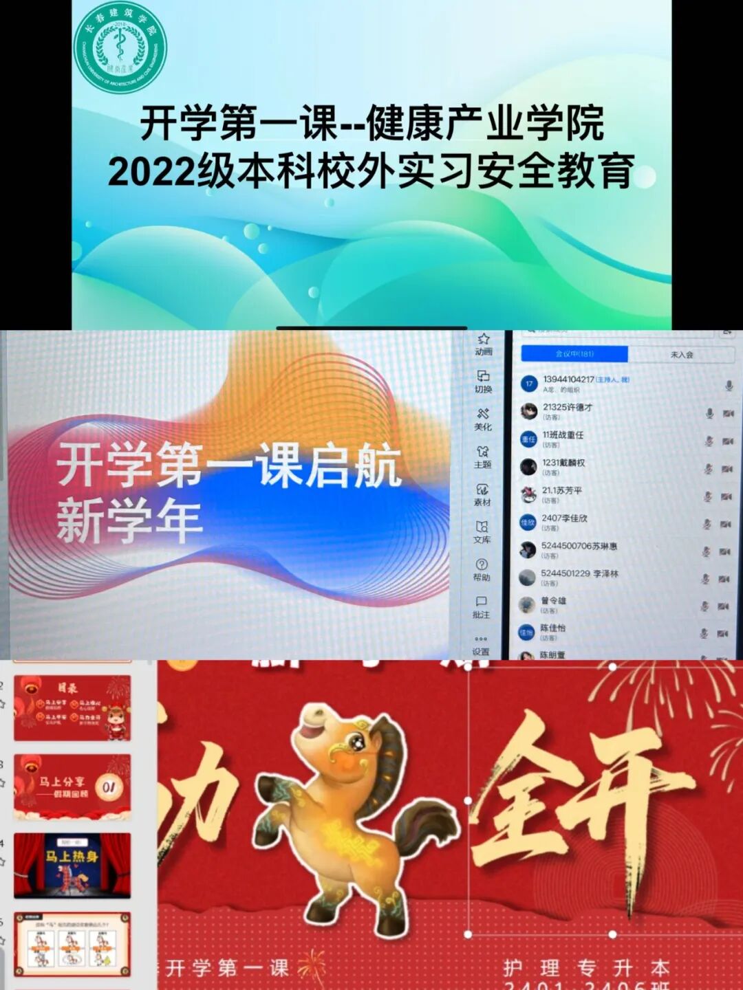 针对校外实习的学子,辅导员依托腾讯会议开展线上“安全教育”第一课,重点强化实习期间安全警示与防护指导,叮嘱实习学子提高安全警惕,做好出行、住宿、临床操作、社交等方面的安全防护,严格遵守实习单位规章制度,防范意外风险,时刻与学校、辅导员保持沟通联动,摒弃侥幸心理,主动学习安全知识,切实提升安全防范和自救互救能力,守护自身生命财产安全,平稳有序完成实习任务。
